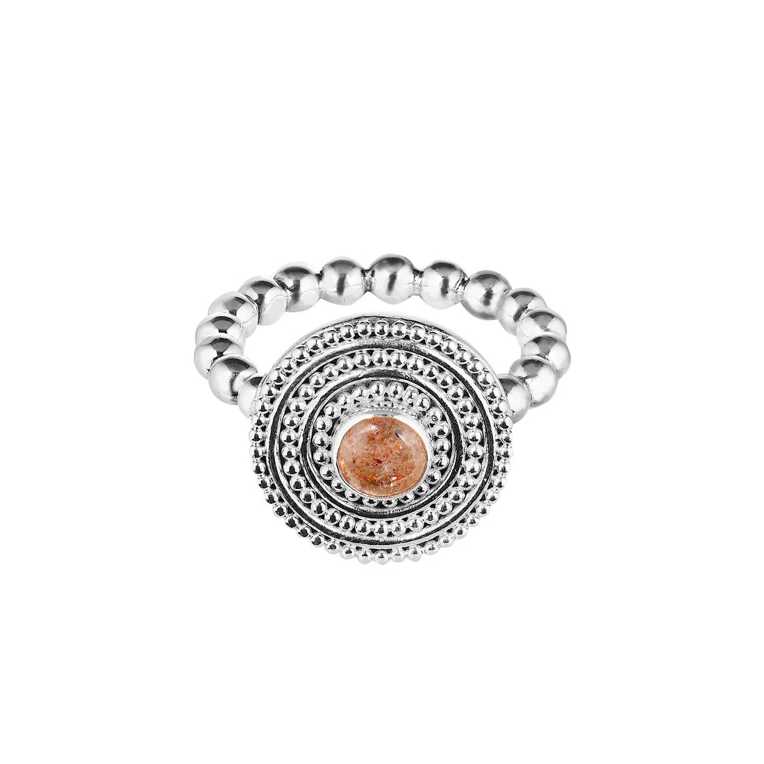 Material: 925 sterling silverInsert: Sunstoneย Silver ring with ัaboัhon of sun stone from Tanzania. This variety...