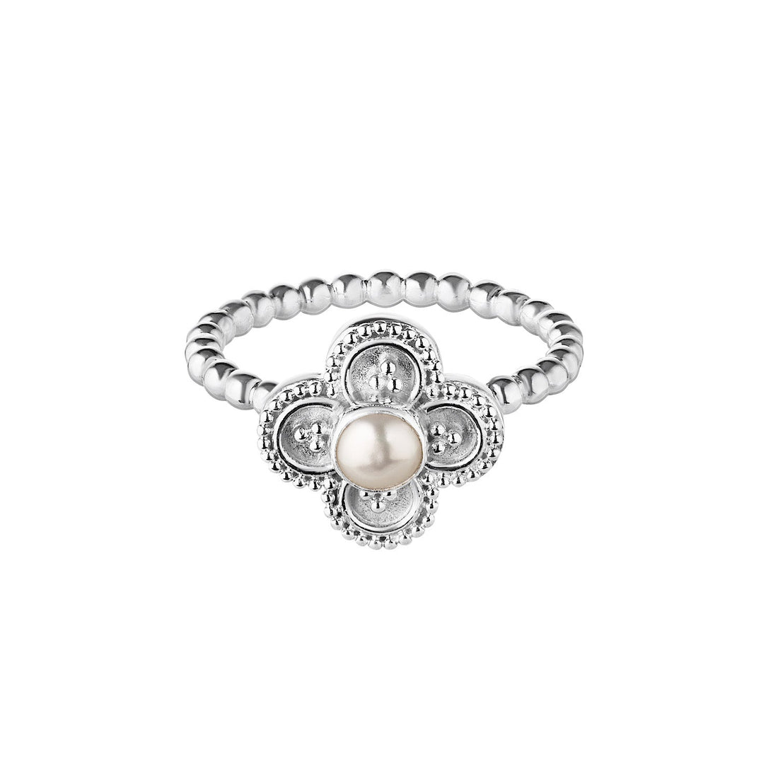 Material: 925 sterling silverInsert: Natural pearlThe PITER ring in the shape of a four-leaf clover...