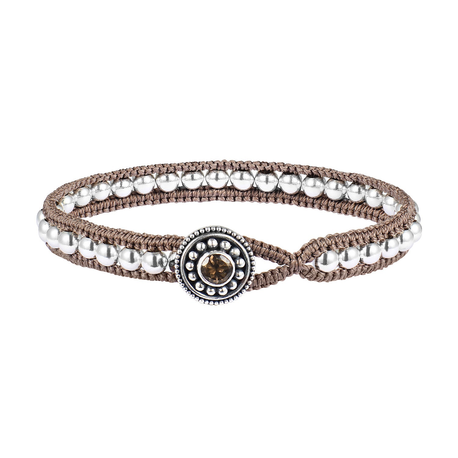 The clasp is a 925 sterling silver button inlaid with rauchtopaz, complemented by silver fittings