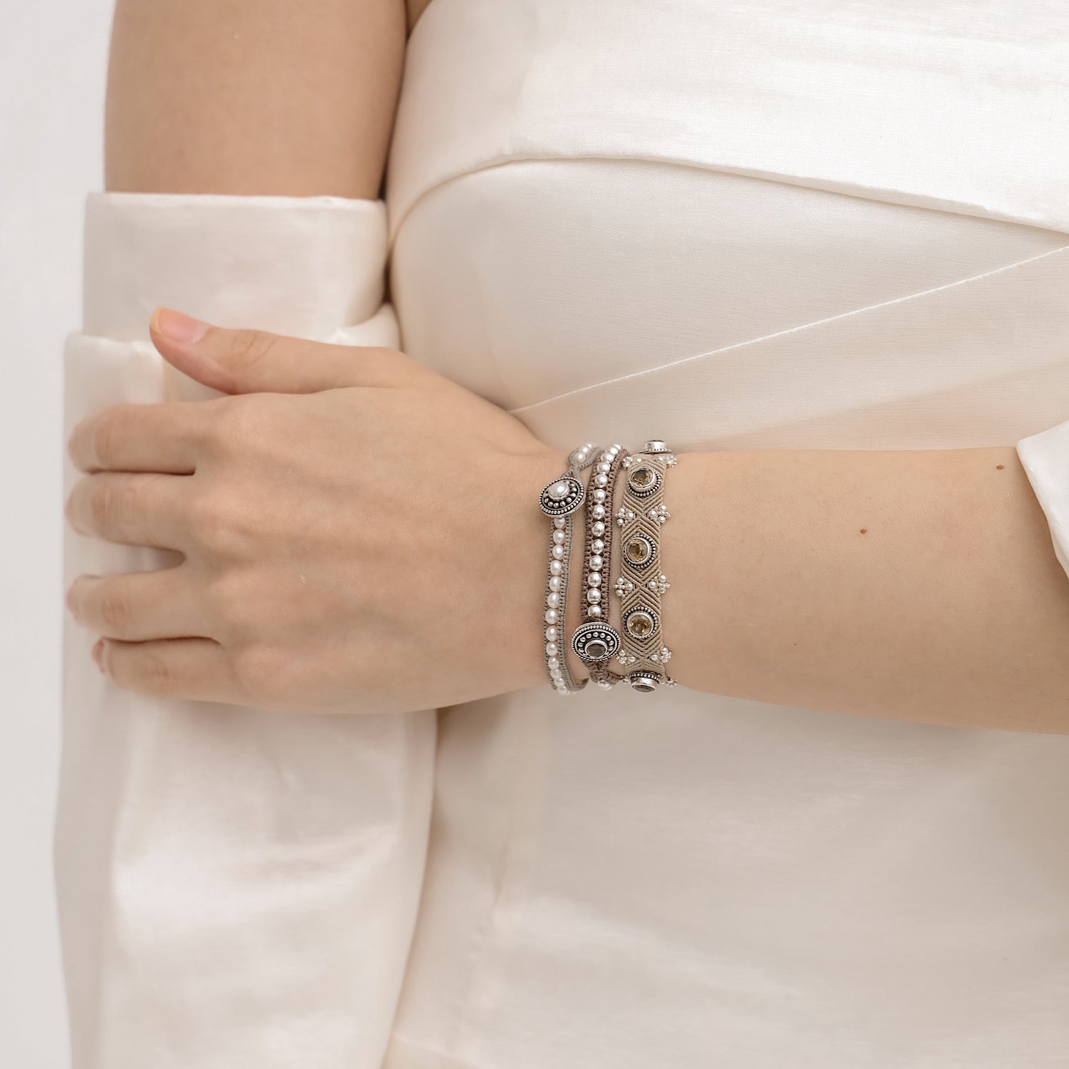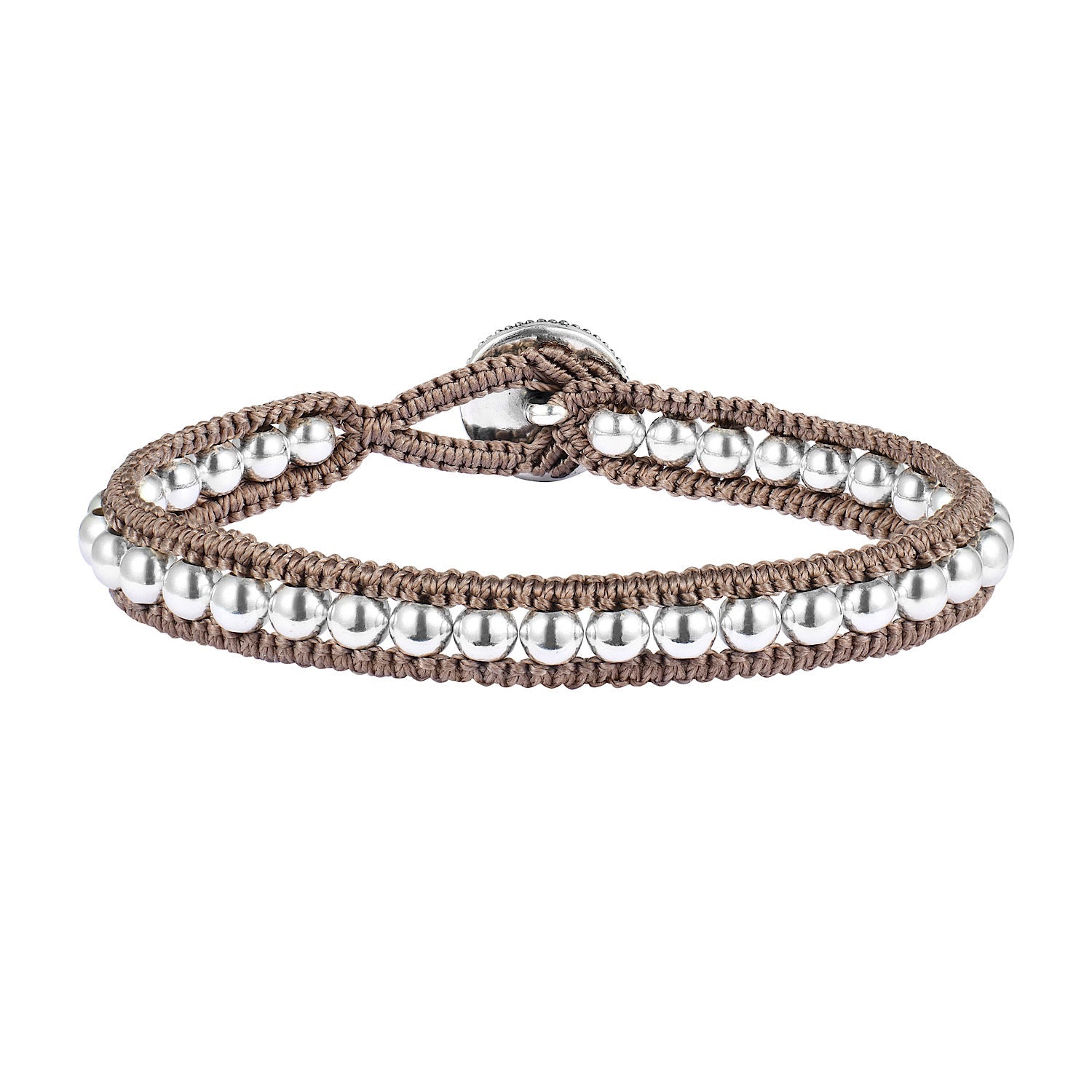 Silver beads shimmer in the wine shade of the threads. DANI can be worn paired with wide ATUSH bracelets or create sets with LILI, MOSCOW and PITER models.