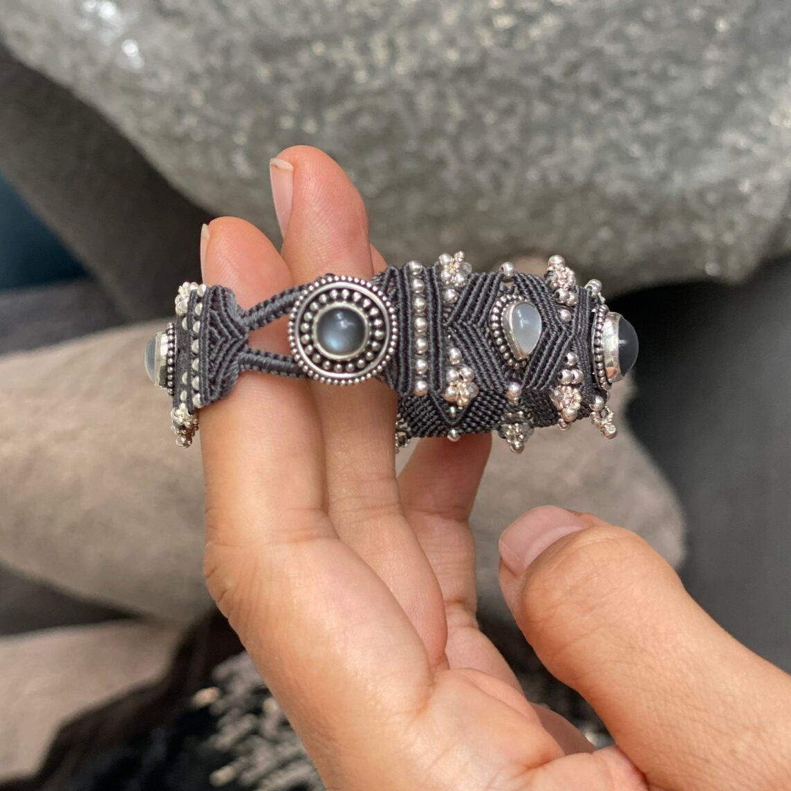 Bracelet UMA with moonstone, dark grey