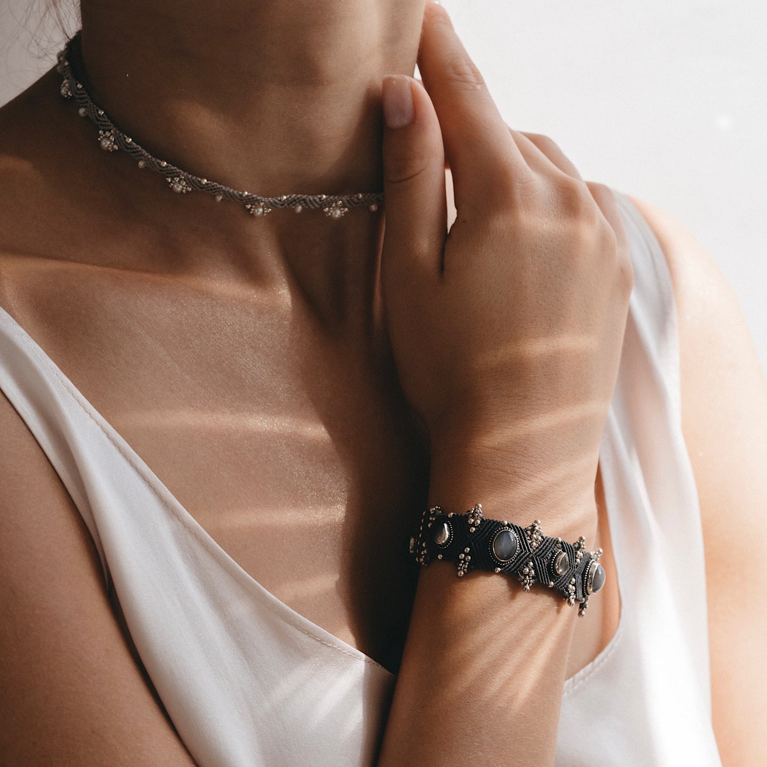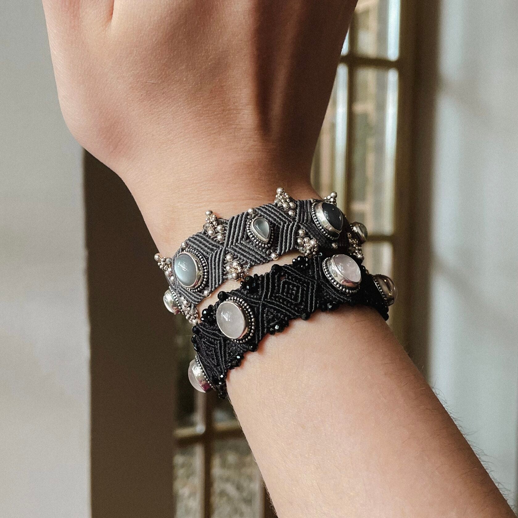 - Natural stone: moonstone and smoky quartz